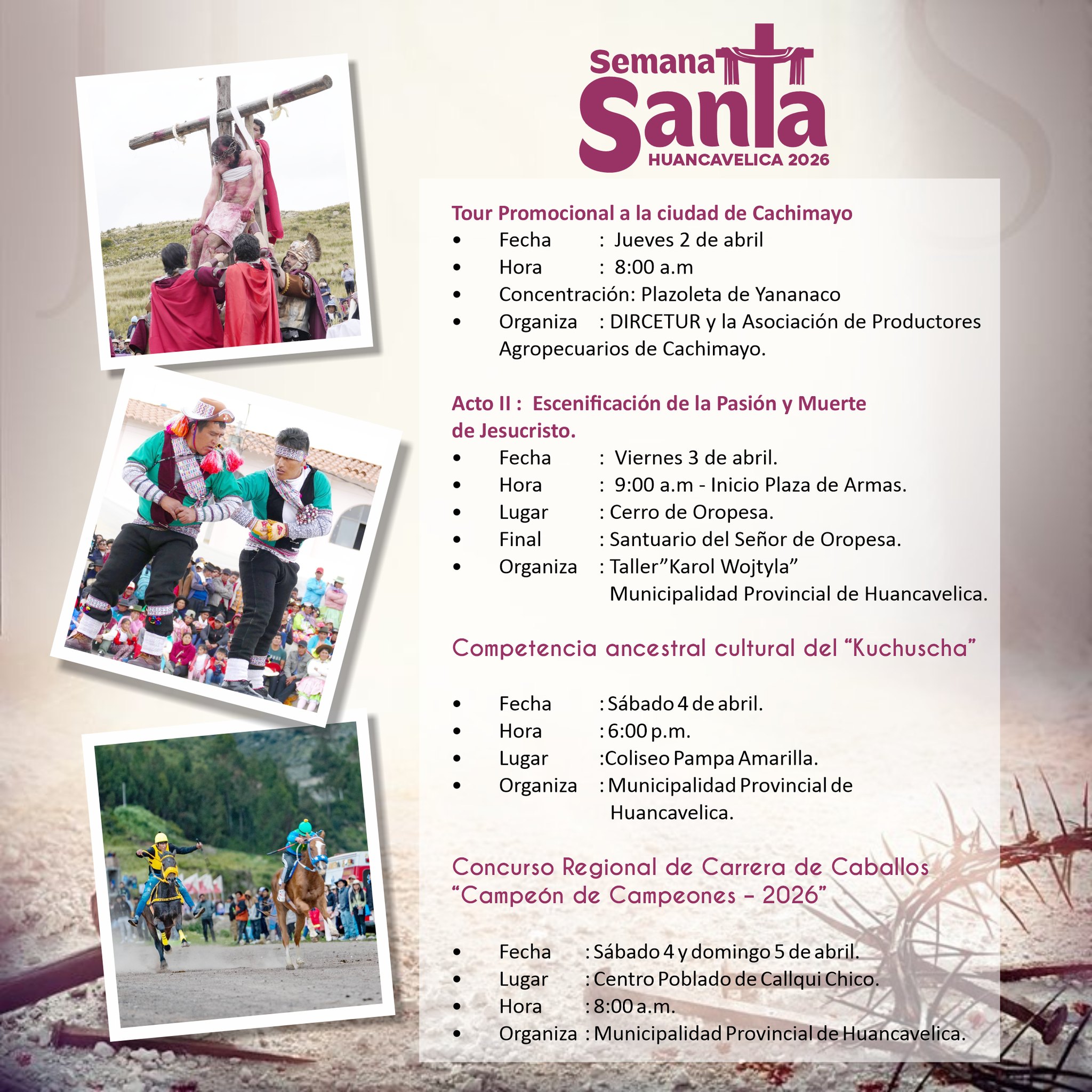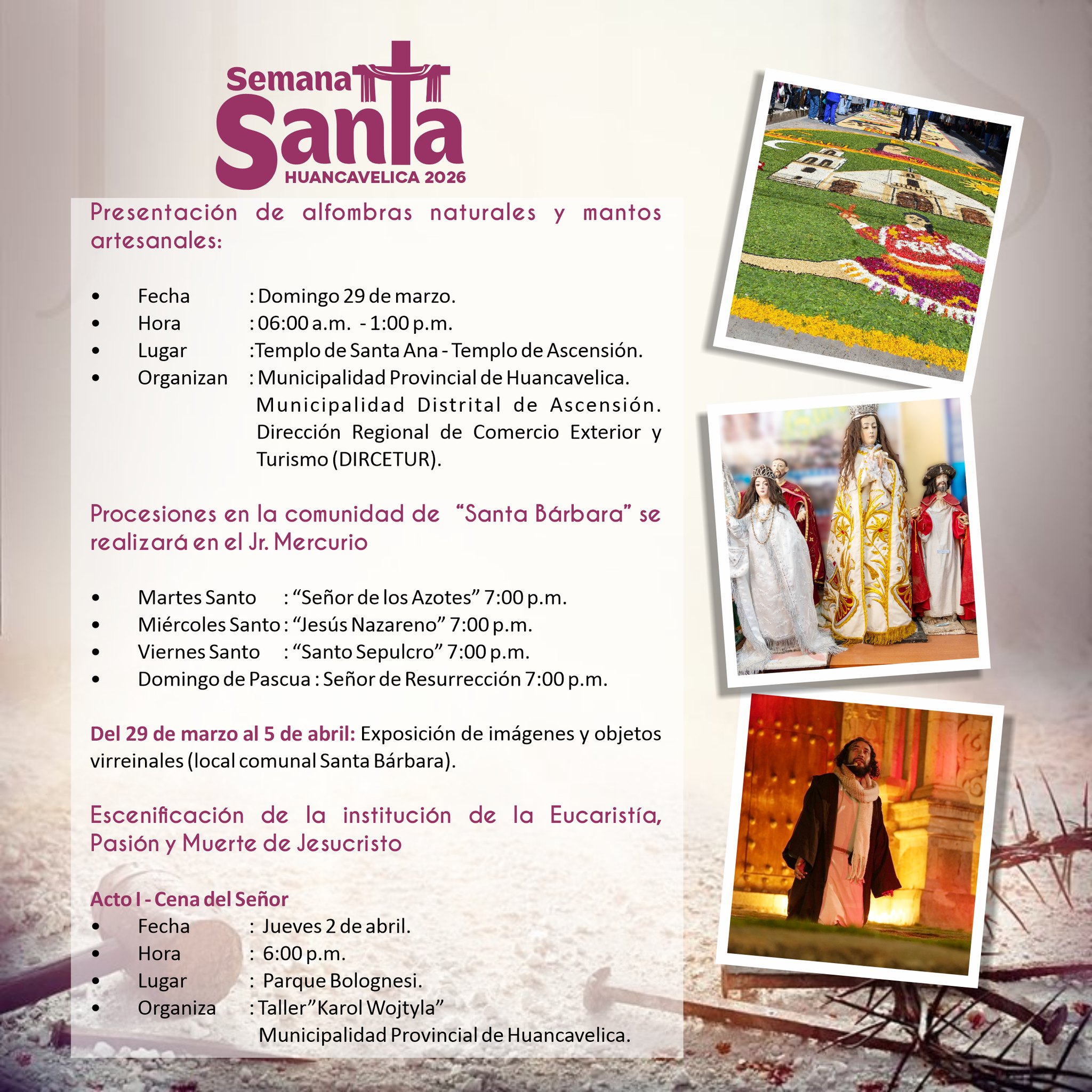📍 Esta Semana Santa 2026, del 27 de marzo al 05 de abril, te invitamos a descubrir Huancavelica, un destino lleno de historia, devoción y costumbres únicas.
