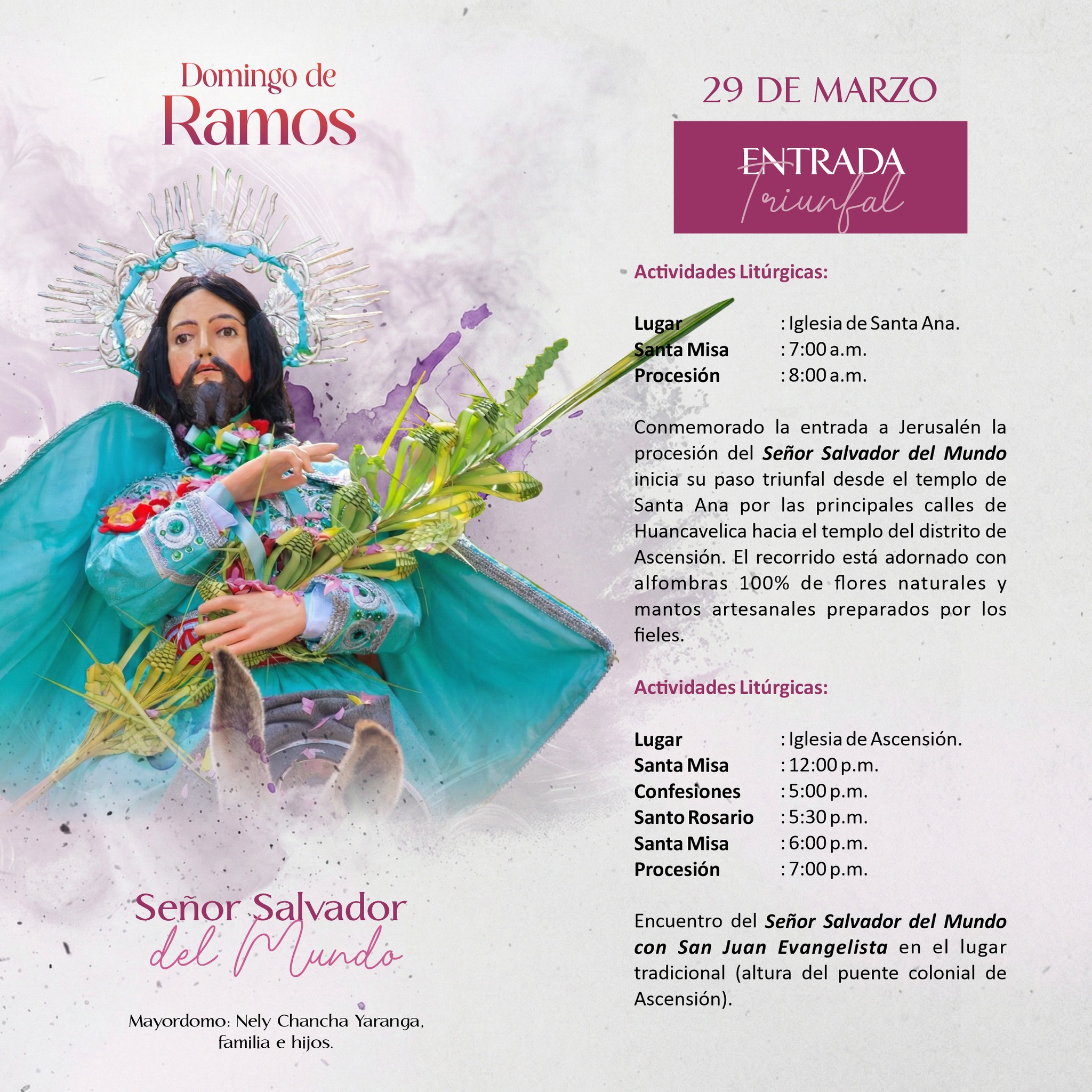 Del 27 de marzo al 5 de abril, la “Tierra del Mercurio” abre sus puertas para ofrecer una de las manifestaciones religiosas más conmovedoras y auténticas del país, con motivo de Semana Santa, reconocida desde el año 2013 como Patrimonio Cultural de la Nación. ☑️